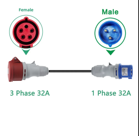 Adapter from household socket to industrial socket CEE - 32A-32A 220V