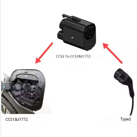 CCS2 to CCS1 AC+DC adapter Plug Adapter EV Charging Adaptor Fast Charging 250A AC+DC Type2 to J1772